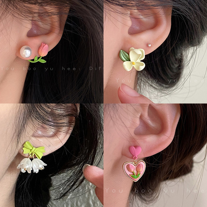 Дизайнерские серьги из жемчуга, в цветочек
