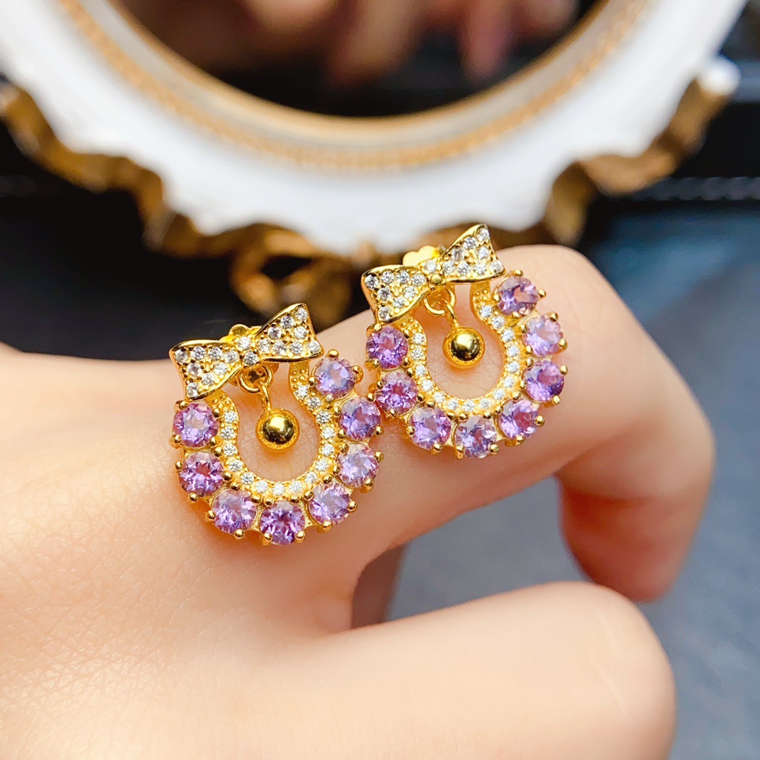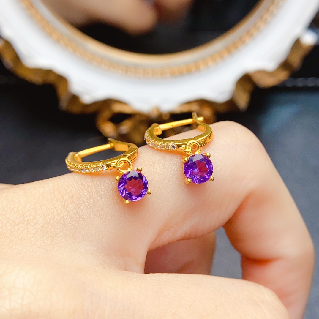 Натуральные серьги с кварцем с аметистом, универсальная инкрустация камня, серебро 925 пробы, 5mm, популярно в интернете, оптовые продажи
