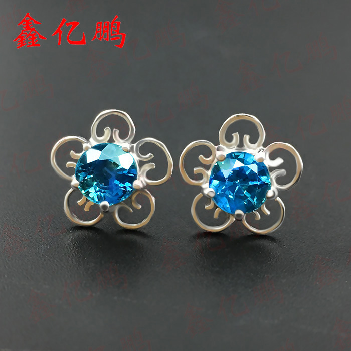 鑫亿鹏 Классические платиновые сапфировые синие серьги из нефрита, простой и элегантный дизайн, белое золото 18 карат
