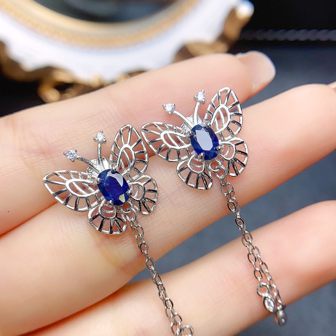 Натуральные сапфировые серьги, милая изысканная модная инкрустация камня, серебро 925 пробы, простой и элегантный дизайн, изысканный стиль