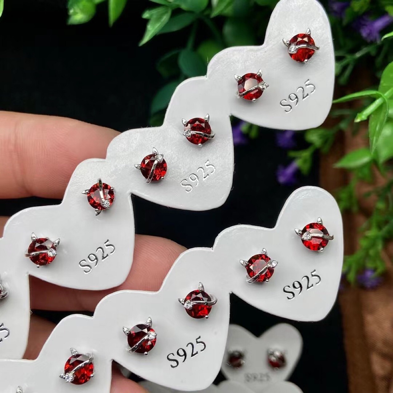 鑫亿鹏 Натуральная инкрустация камня из граната, серьги с кварцем, серебро 925 пробы, с драгоценным камнем, японские и корейские