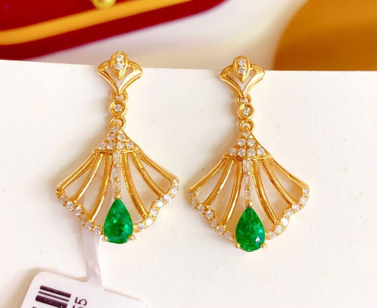 鑫亿鹏 Золотые натуральные рубиновые серьги, 18 карат, в корейском стиле