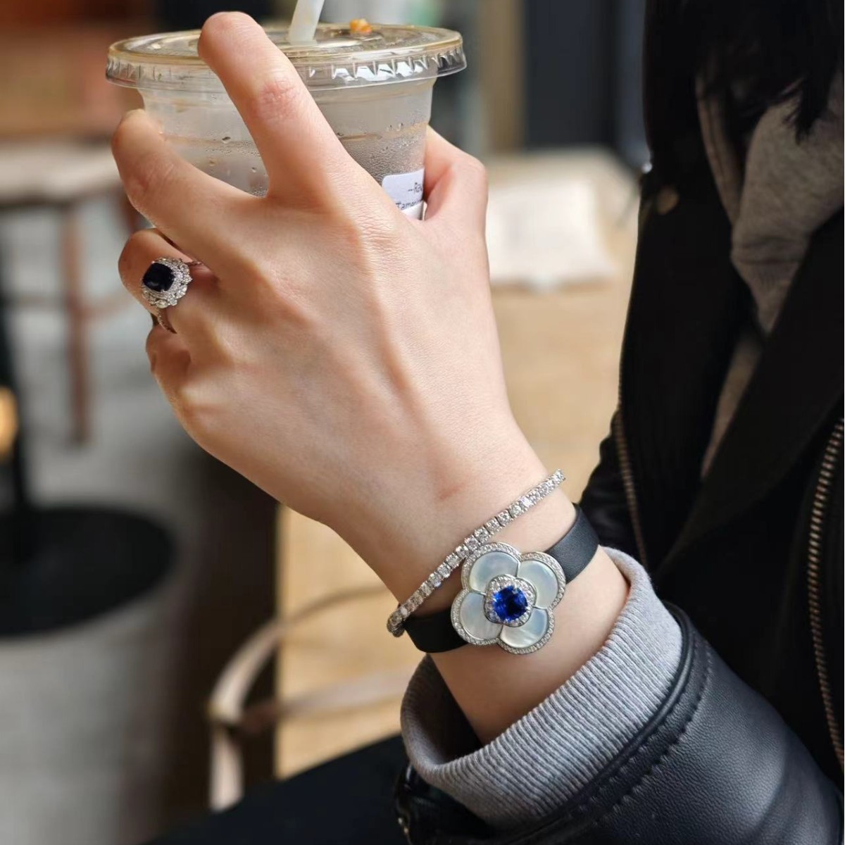 Модный искусственный королевский сапфировый белый кожаный браслет, 2.4 карат, легкий роскошный стиль, четырехлистный клевер, изысканный стиль