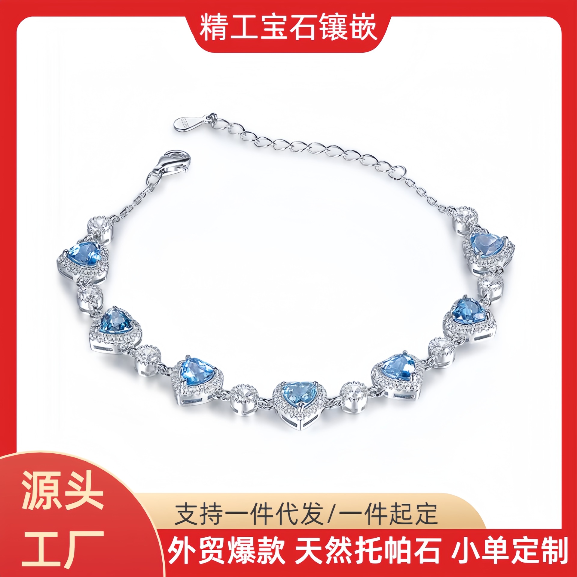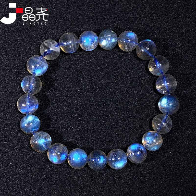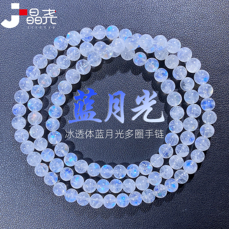 晶尧 Прозрачный ледяной лунный световый каменный браслет с микроэлементом хлопковой хлопок Сильный синий свет любители каменного трехиргального кристаллического браслета
