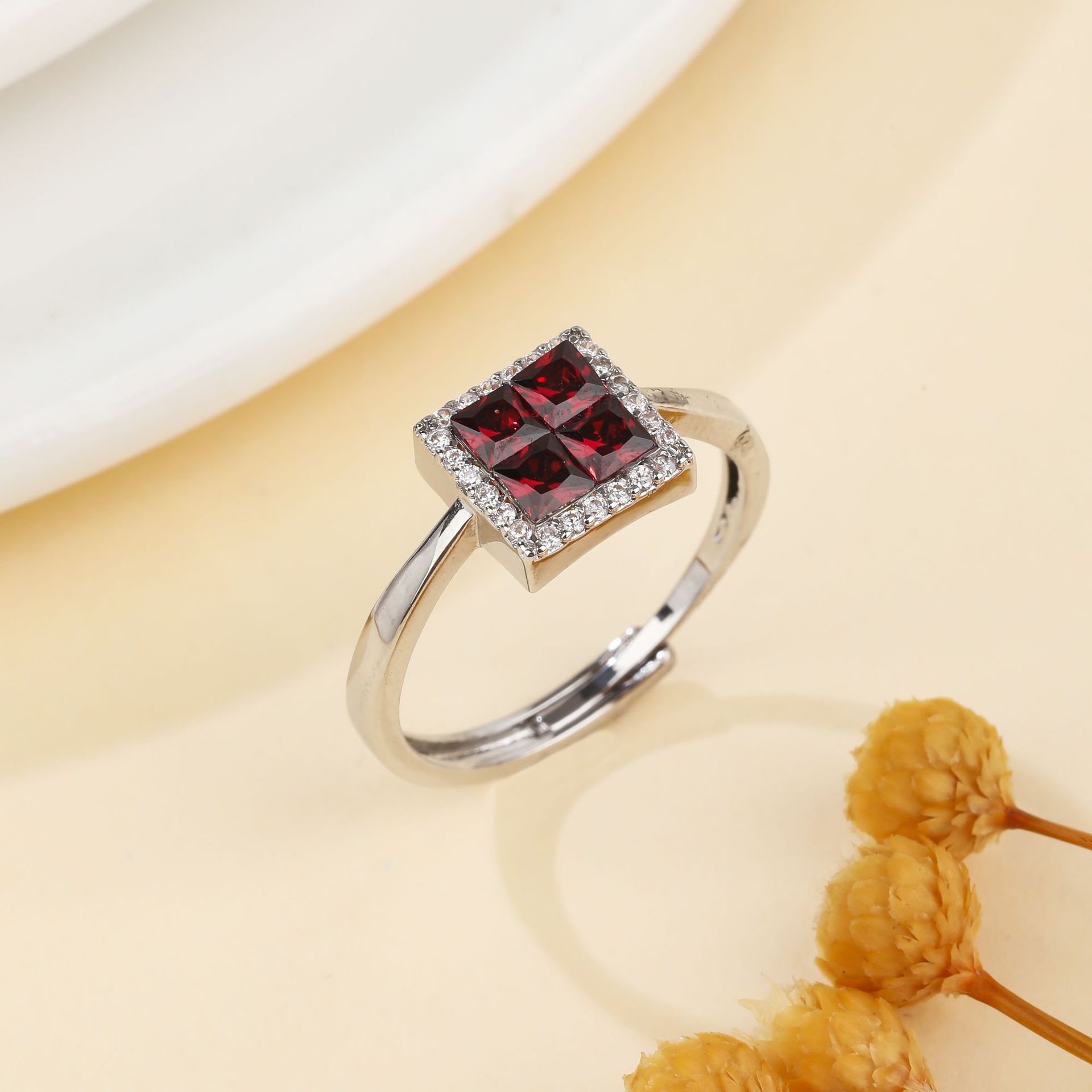 Квадратное натуральное кольцо с камнем из граната, квадратная инкрустация камня
