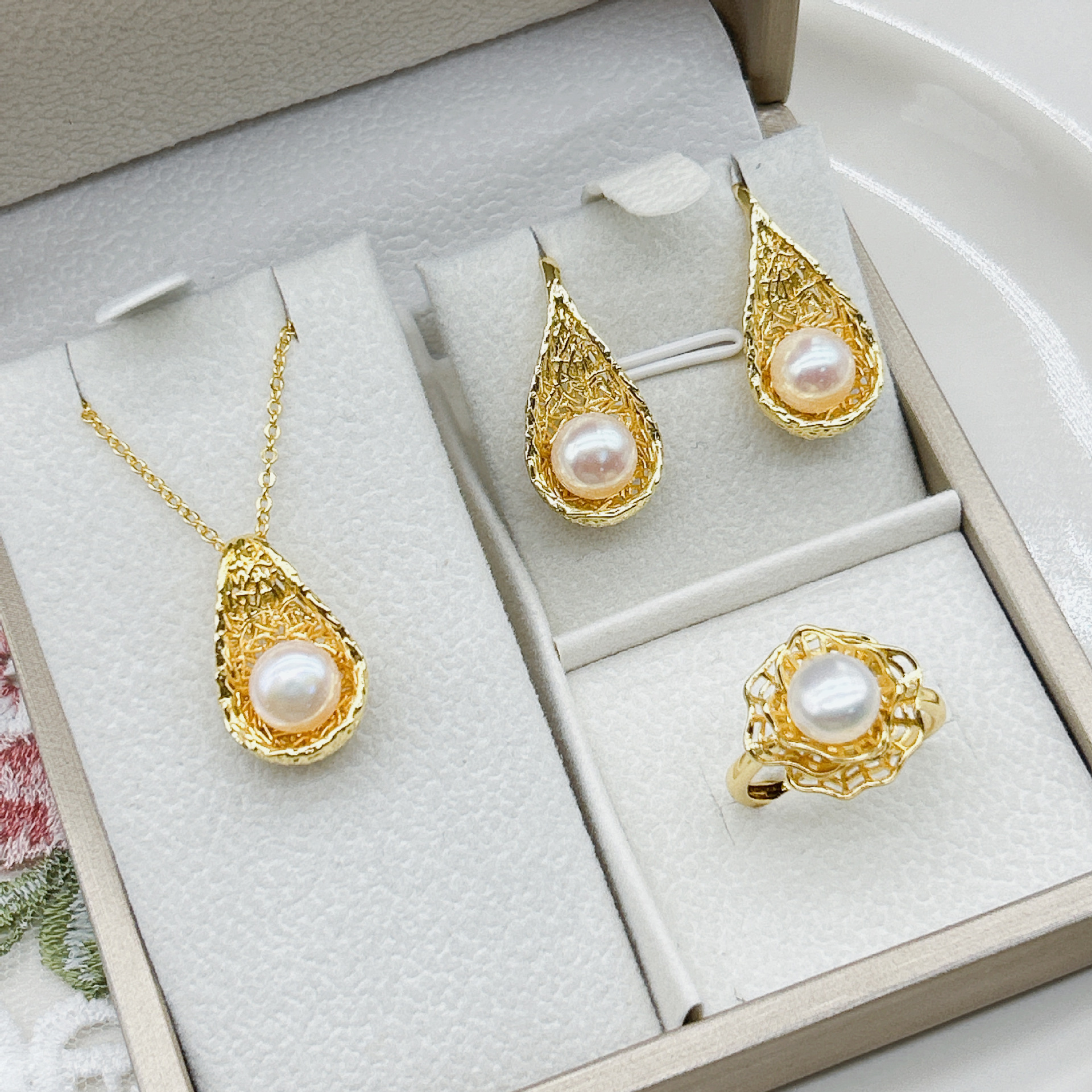 Натуральное ожерелье из жемчуга, комплект, подарочная коробка для матери на день матери, 3 предмета, подарок на день рождения, оптовые продажи
