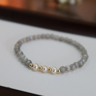 Натуральный оригинальный дизайнерский браслет из жемчуга, лунный камень, США, 14 карат