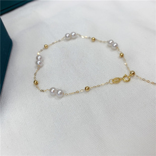 Регулируемый браслет из жемчуга, 4mm, золото 750 пробы