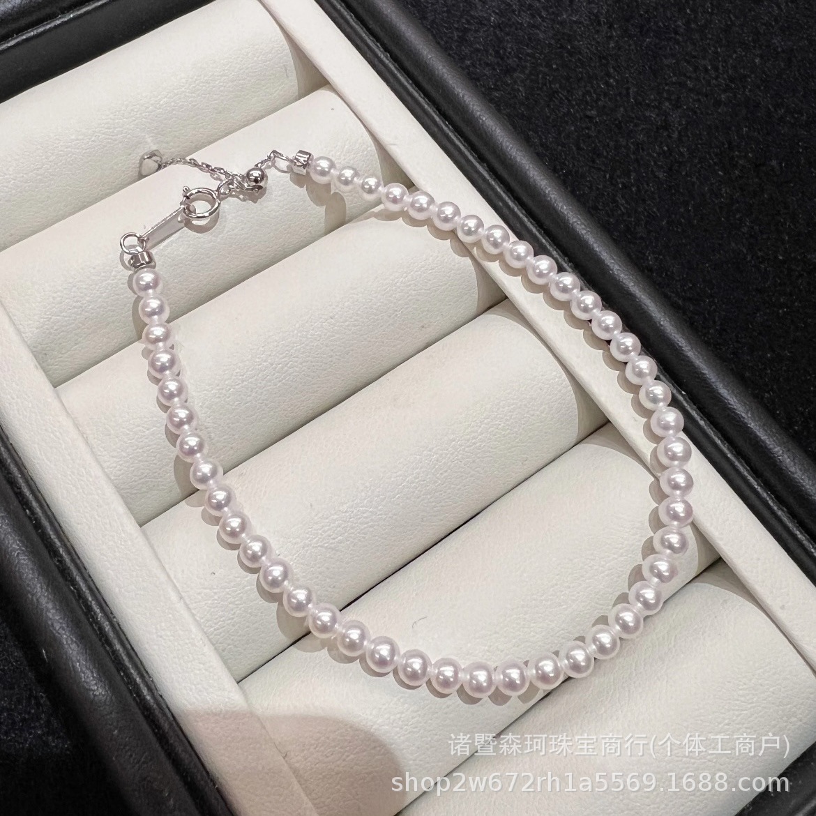 Браслет Zhuji из натурального пресноводного жемчуга Акойя 3-4 мм Аврора, почти круглый, почти безупречный, серебряная регулируемая цепочка S925