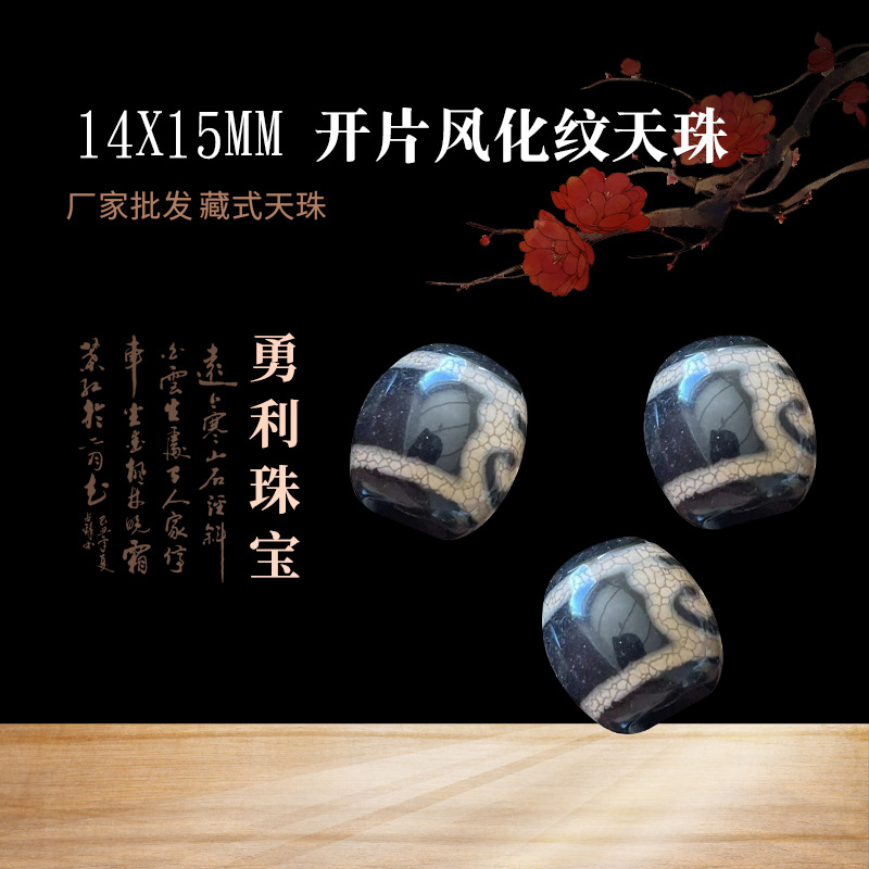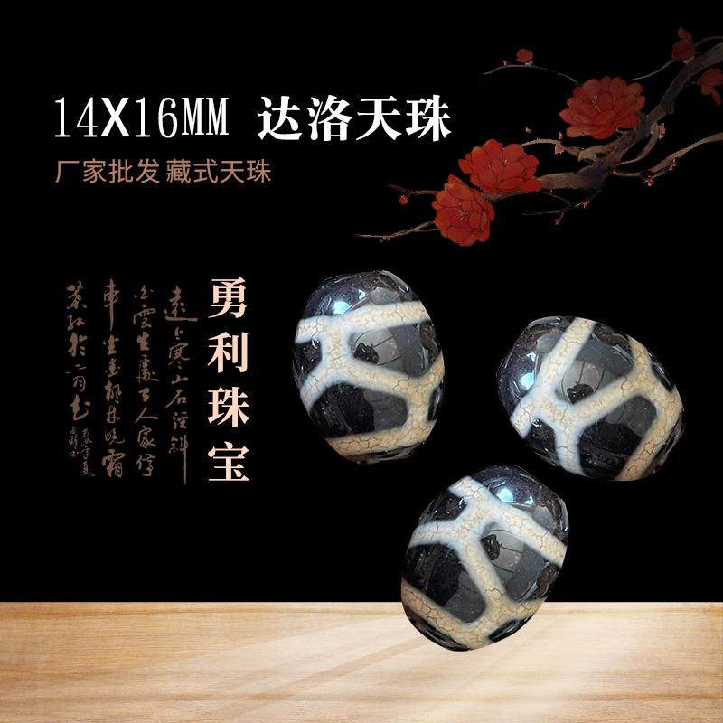 Производитель поставляет бусины тибетского DZI 14✖16 мм с открытым выветритным рисунком, глянцевые черные волосы, бусинки Daluo dzi