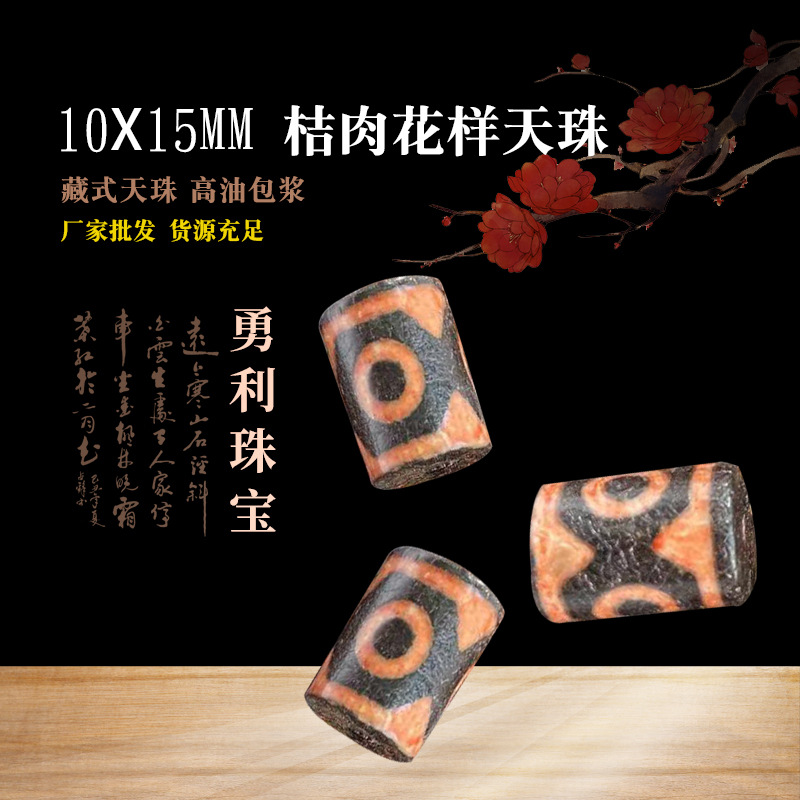 Тибетская DZI Natural Agate 10✖15 мм антикважина делает оранжевую апельсиновую свинину модель неба San Beads