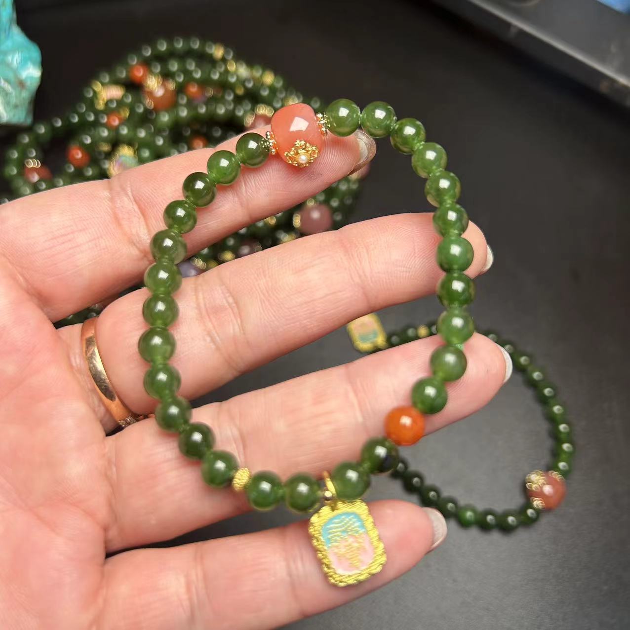Изумрудные ониксовые золотые бусины из нефрита из воскового агата, браслет из кварца
