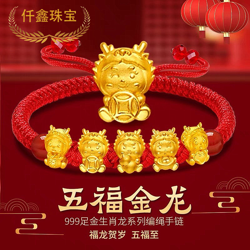 仟鑫珠宝 Золотой оберег на день рождения, браслет с одной бусиной, оптовые продажи