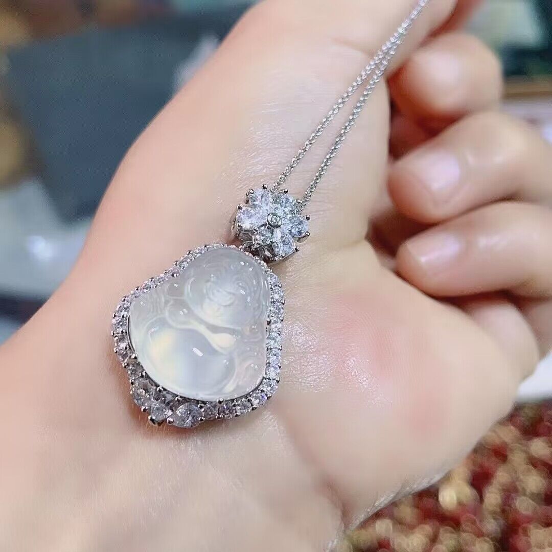 Маленькая серебряная подвеска из белого нефрита, агатовая инкрустация камня из нефрита, имитация льда