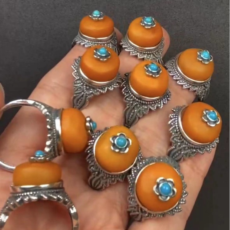 鑫钰 Янтарное кольцо из воскового агата, эмаль, оптовые продажи, HP4110802