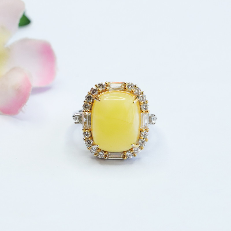 眷钰 Янтарное кольцо из воскового агата, серебро 925 пробы, оптовые продажи, HP2092608