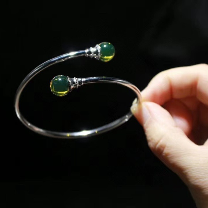 Инкрустация камня, янтарная натуральная природная руда, модный браслет из воскового агата, серебро 925 пробы