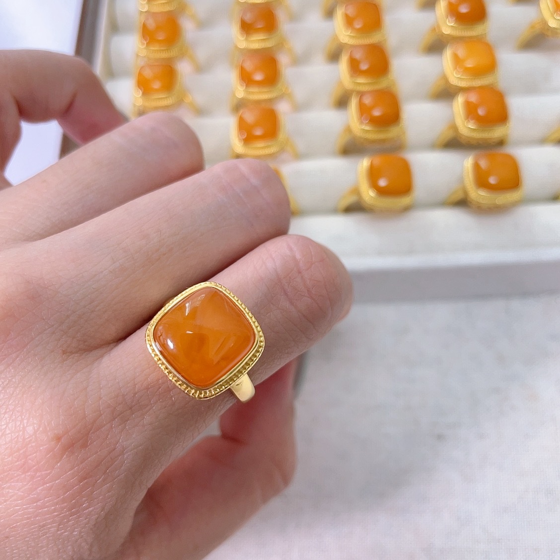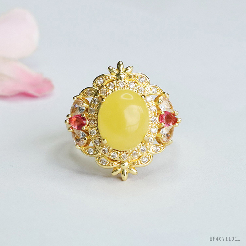 眷钰 Янтарное кольцо, ювелирное украшение из воскового агата, оптовые продажи, HP4071101
