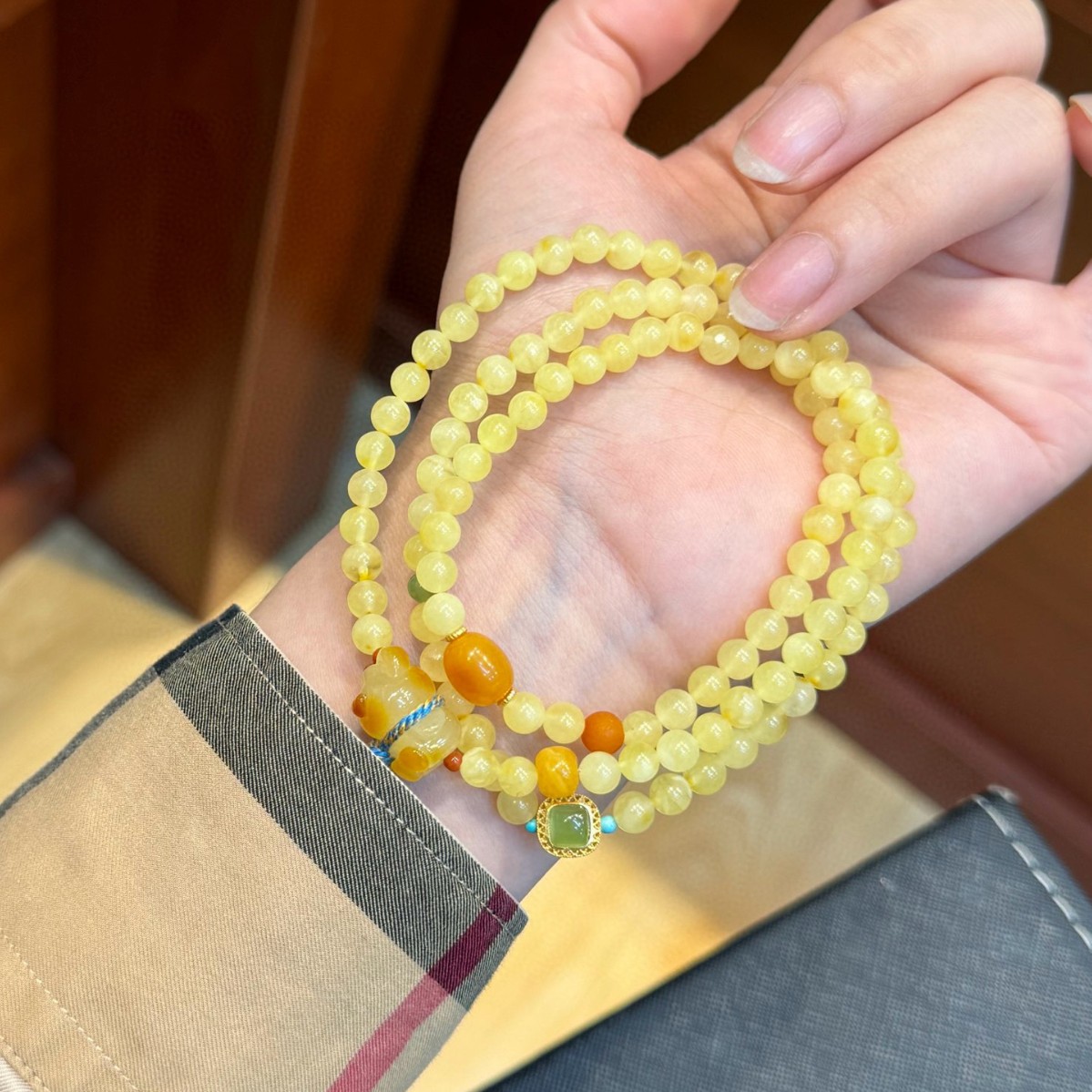 眷钰 Янтарный браслет из воскового агата, ретро ювелирное украшение, оптовые продажи, HP4110702