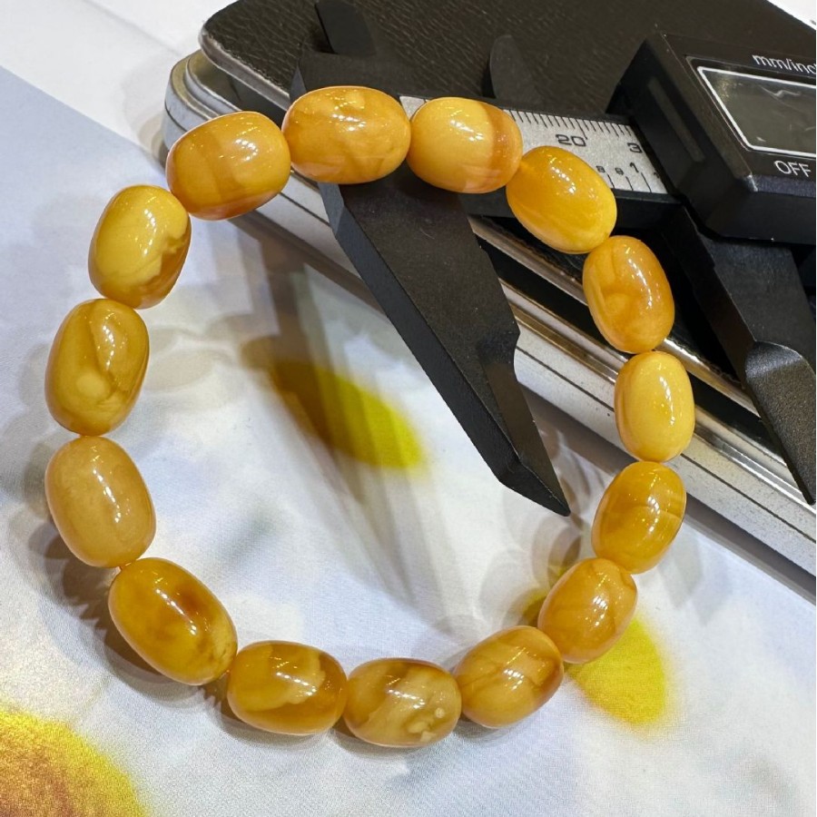 Качественный янтарный браслет из бусин из воскового агата