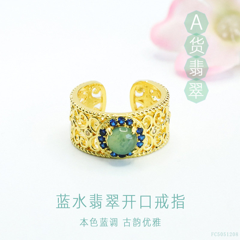 眷钰 Натуральный жадеит класса А, кольцо с голубой водой, нефритовое кольцо на открытый палец, оптовая продажа, оптовая продажа FC5051208
