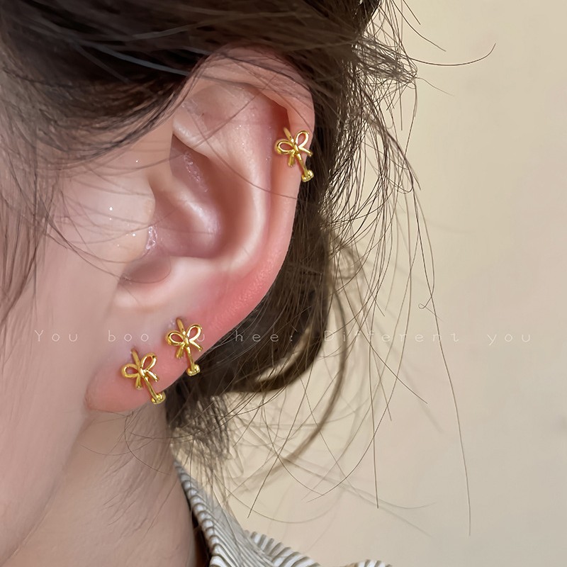 Универсальные изысканные небольшие дизайнерские маленькие серьги с бантиком, тренд сезона