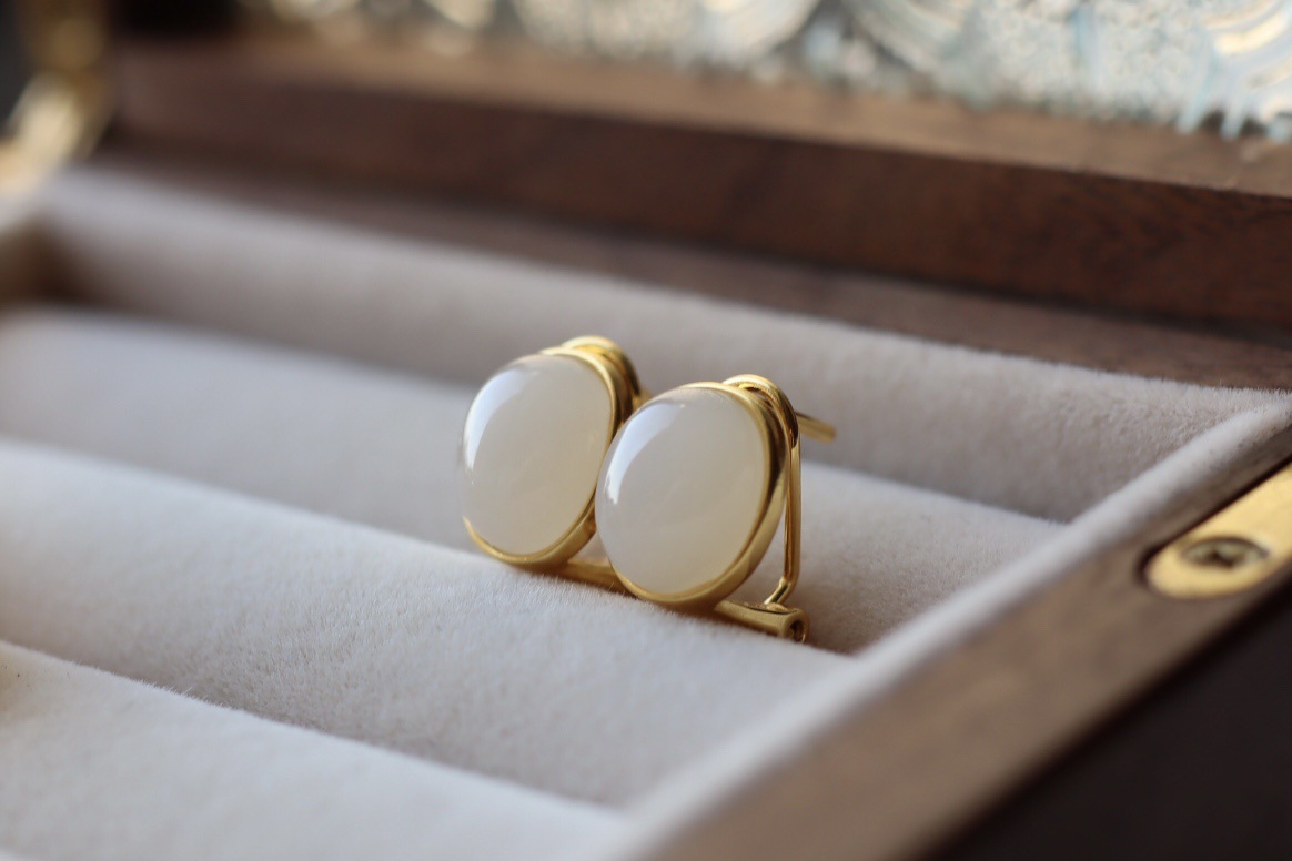 Натуральные серьги из провинции Цинхай из округа Хотан из белого нефрита, серебро 925 пробы, золото 750 пробы, 10mm
