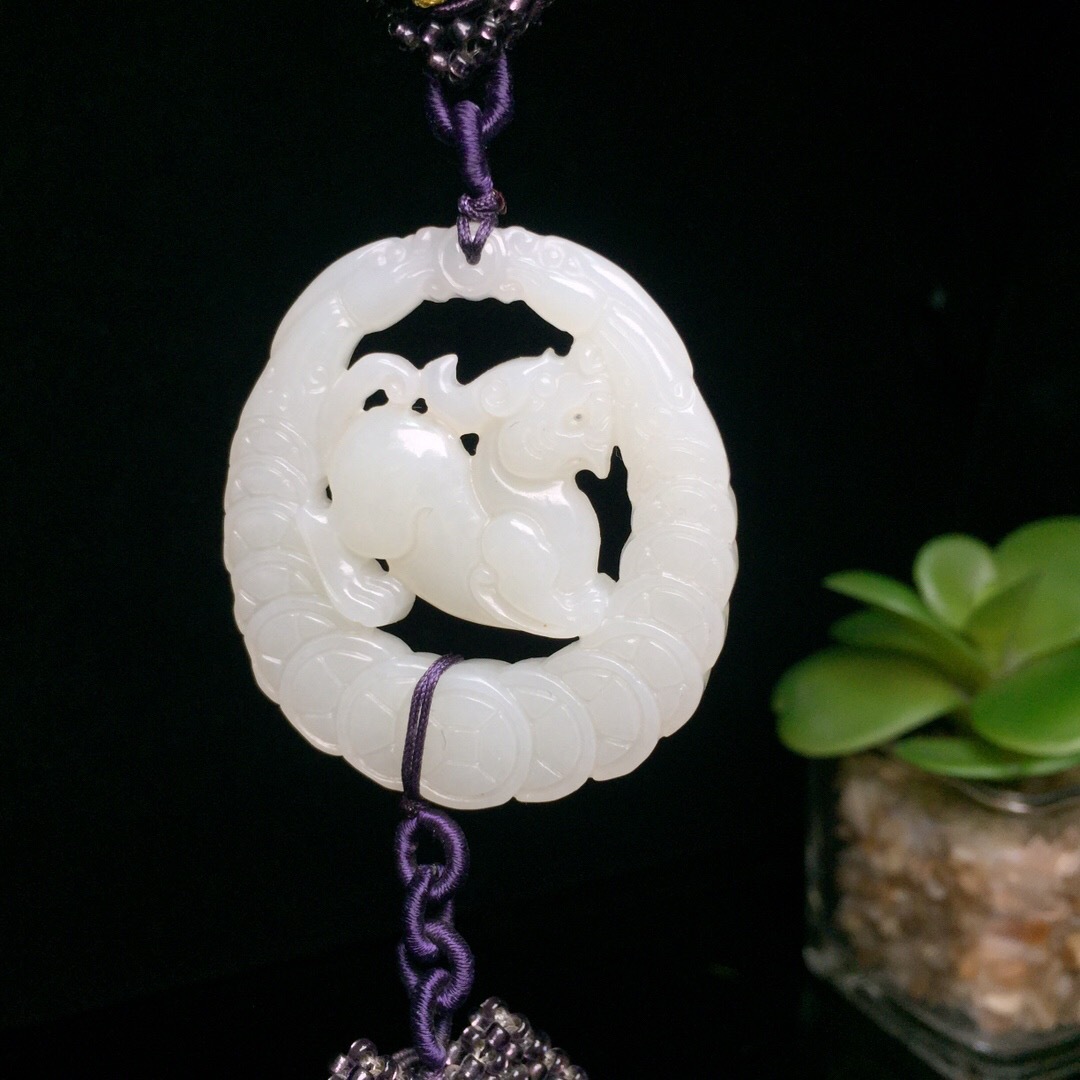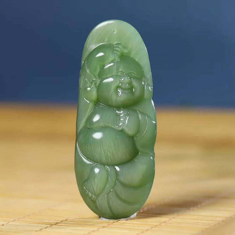 Хэтянский нефрит Цинхай, старый материал {бренд Tai Sui} изготовлен из теплого и влажного материала, без черноты и трещин, а резьба изысканная и старинная.