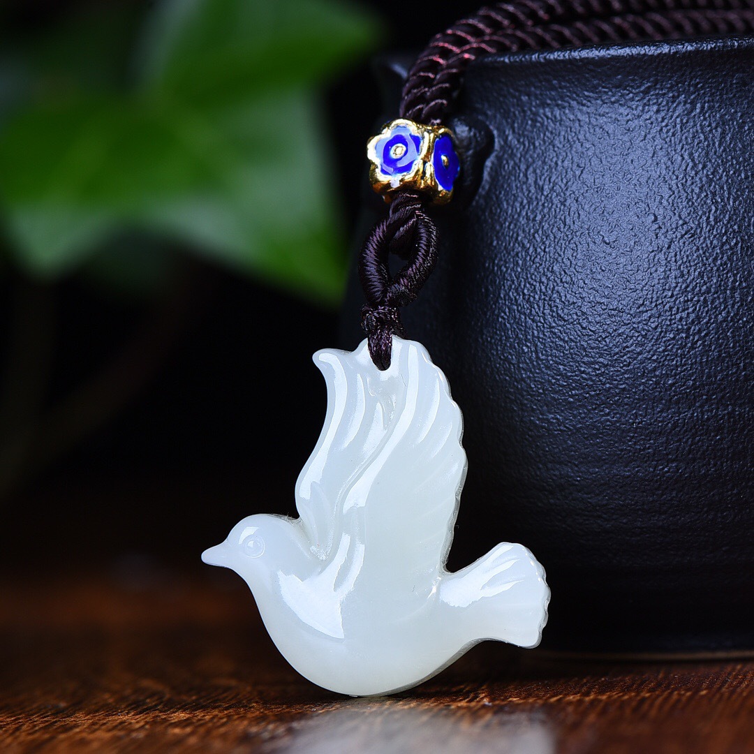 Прилагаемый сертификат поддерживает повторную проверку. Синьцзян белый нефритовой кулон голубя. Хитианский белый нефрит Мирный летающий кулон голубя.