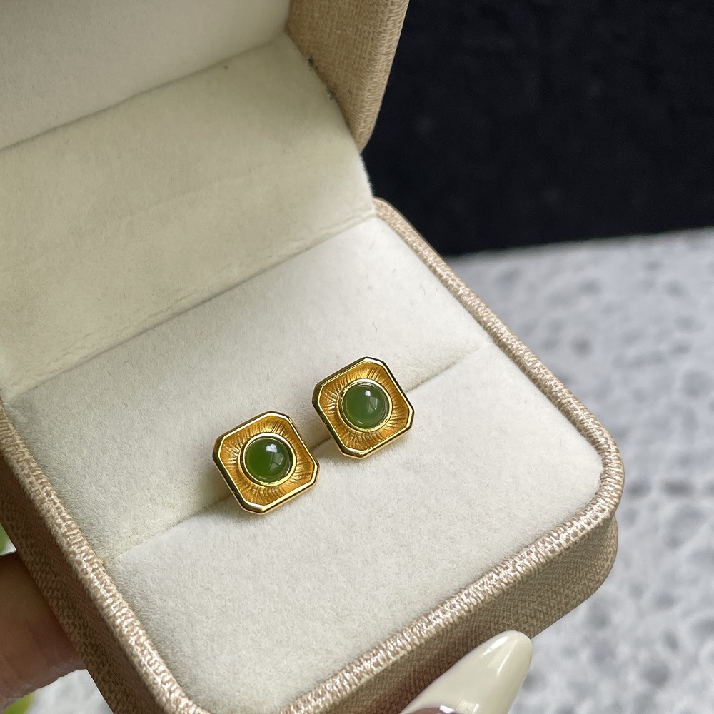 Ретро минималистичные серьги из нефрита, квадратная инкрустация камня, яшма, серебро 925 пробы