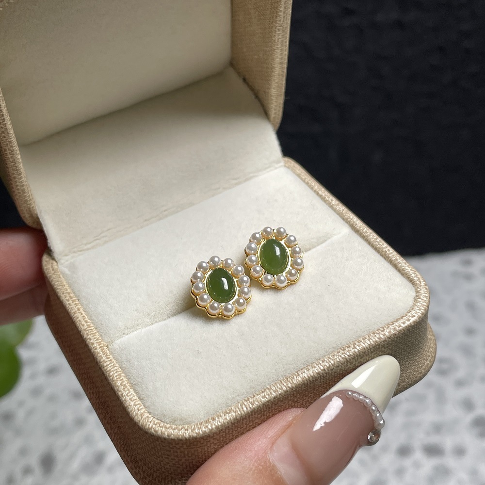 Яшма из нефрита из жемчуга, универсальные серьги, серебро 925 пробы, легкий роскошный стиль