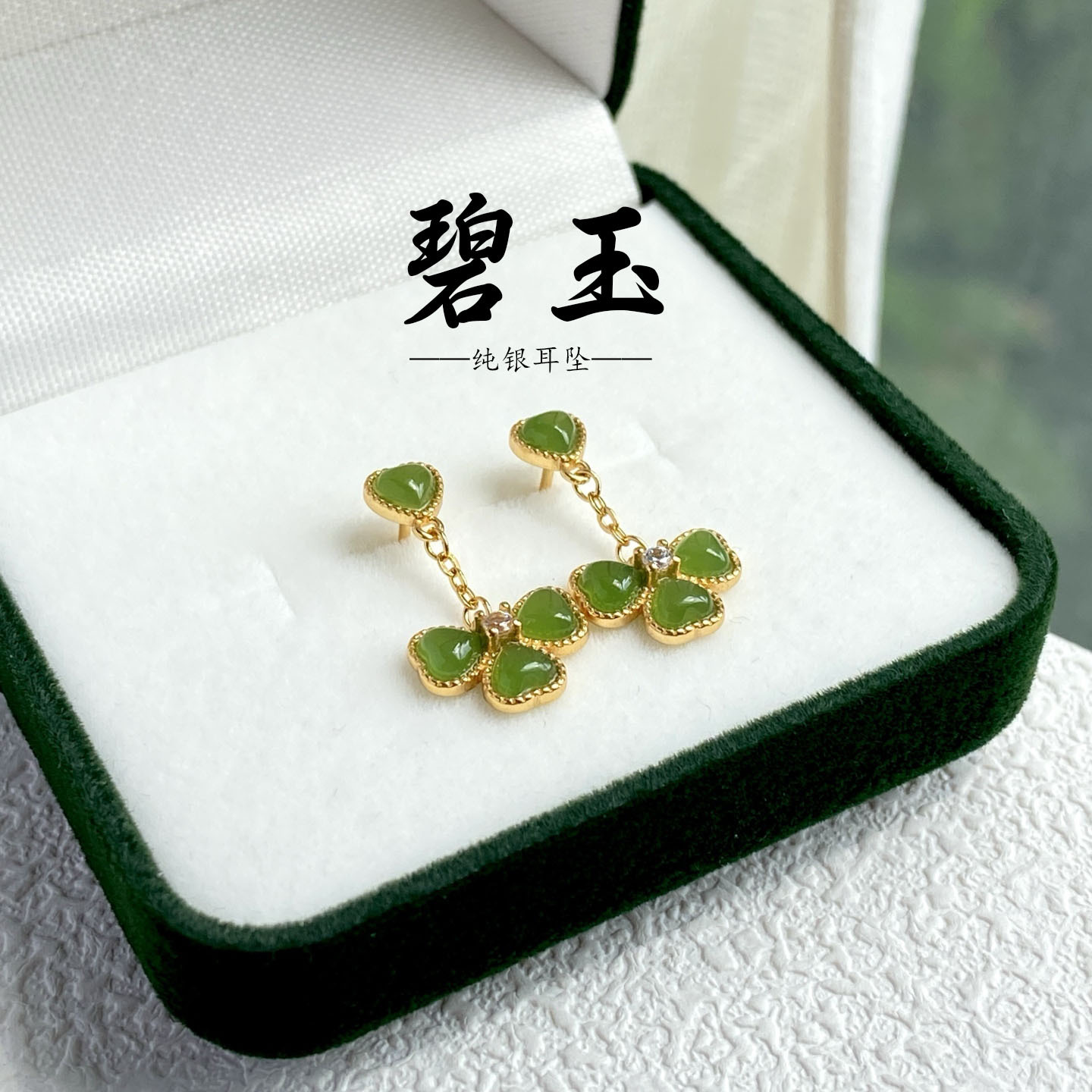 Натуральная яшма, серьги из нефрита в форме сердца, серебро 925 пробы