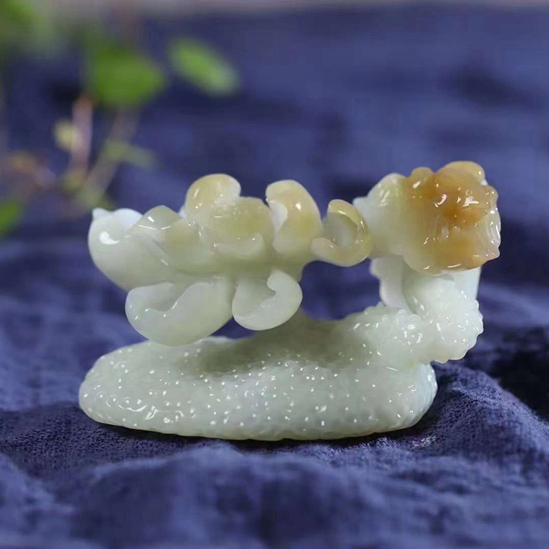 Jade Crafts Natural Xinjiang Hetian Jade Qiemo Sugar Sugard лягушка лотоса Jade маленькие украшения
