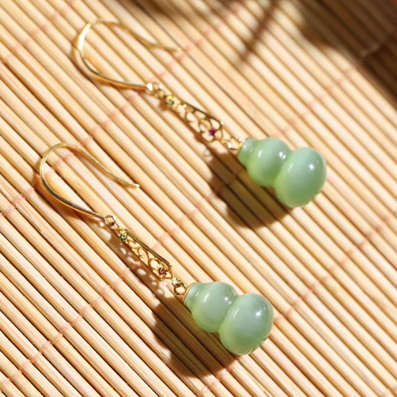 Натуральная яшма из нефрита из старинного материала, серьги, золото 750 пробы