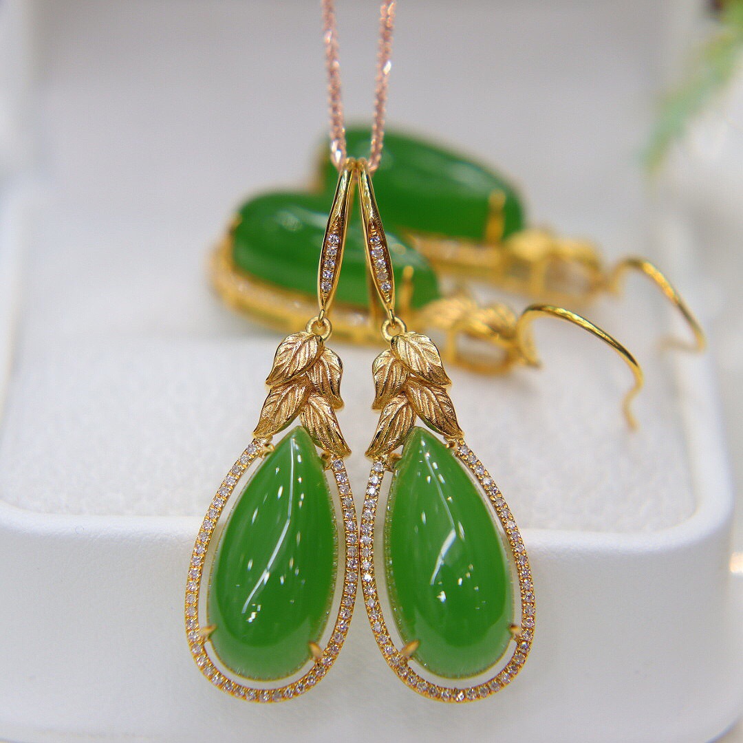 福贝钻 Apple, ювелирное украшение, яшма из округа Хотан, серьги, драгоценный камень, золото 750 пробы, 18mm