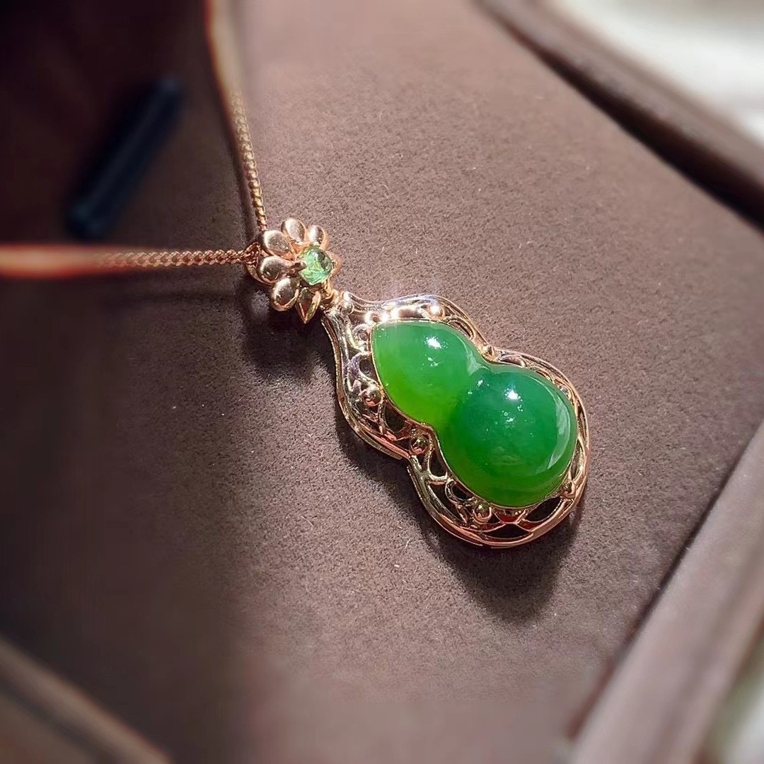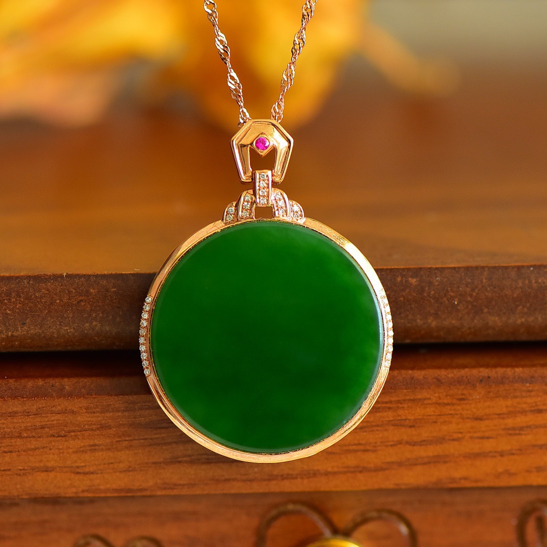 福贝钻 Ювелирное украшение, натуральная инкрустация камня, яшма из округа Хотан, подвеска, драгоценный камень, золото 18 карат, 14.5mm