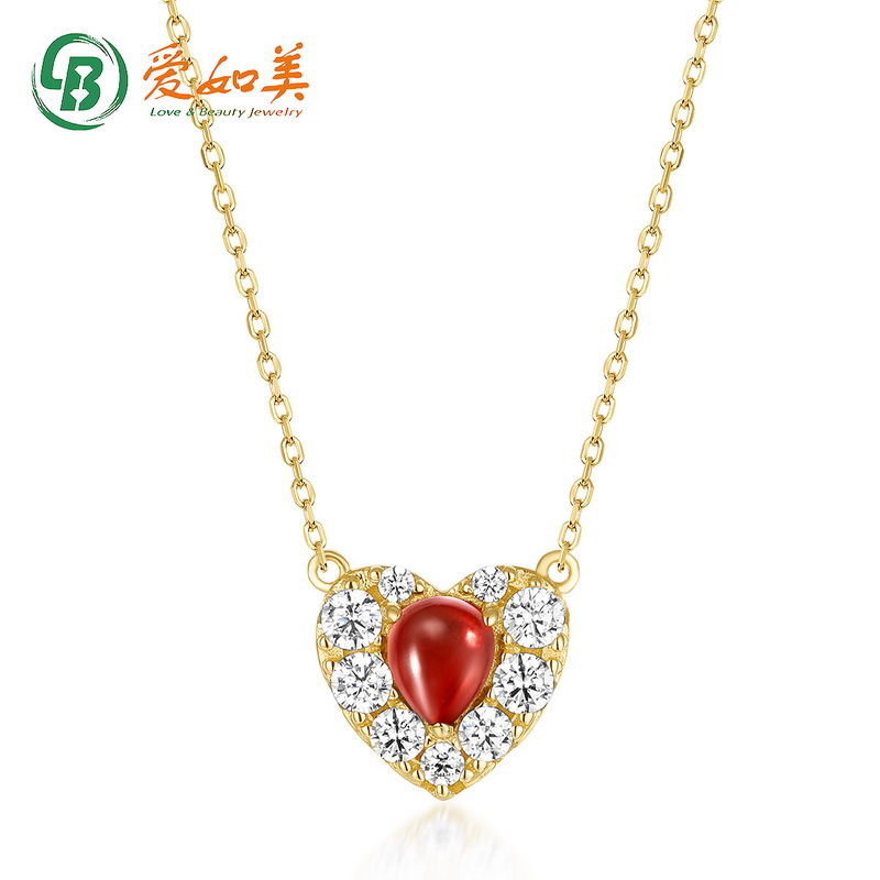 Японская цепочка в форме сердца, ожерелье из граната, легкий роскошный стиль, золото 14 карат, оптовые продажи
