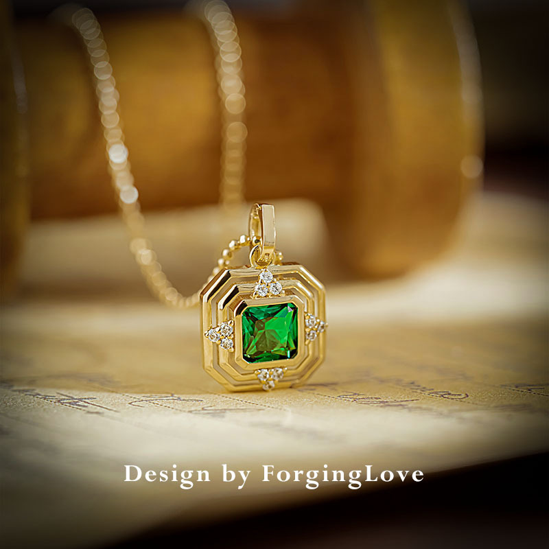 Универсальная подвеска, синтезированная инкрустация камня, зеленое золотое ожерелье, ювелирное украшение, золото 750 пробы, с драгоценным камнем