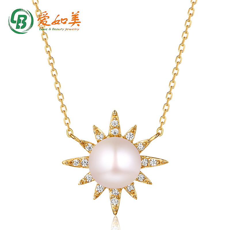 Ожерелье, цепочка до ключиц на солнечной энергии, ювелирное украшение из жемчуга, подвеска, золото 14 карат, японские и корейские, 18 карат