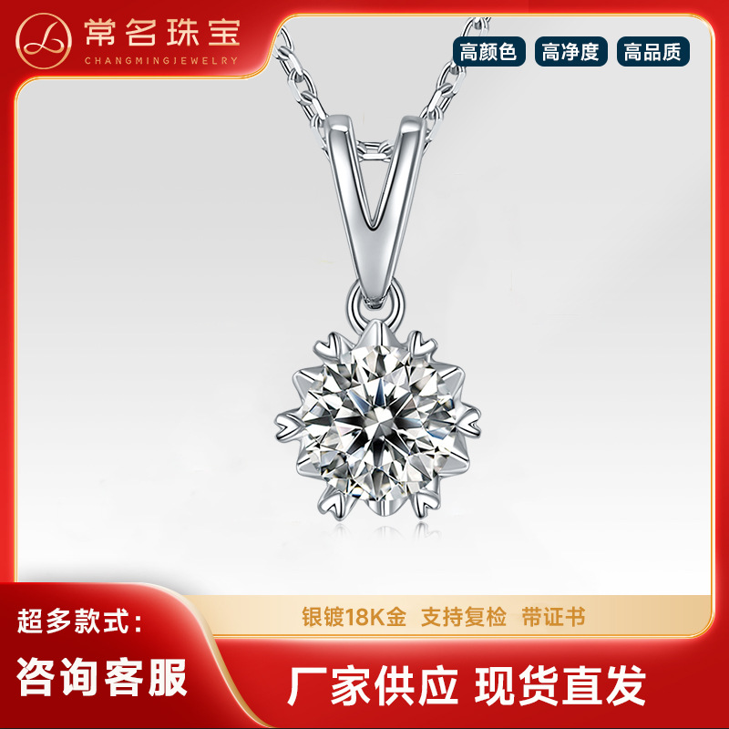 Искусственная классическая подвеска, цепочка до ключиц, золото 750 пробы, со снежинками, 1 карат