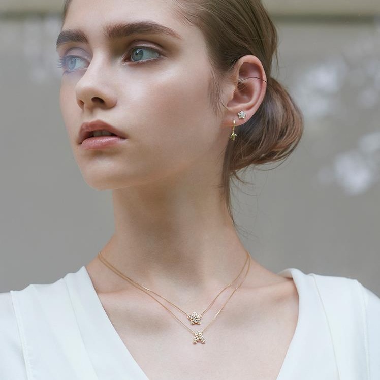 Японское бриллиантовое золотое ожерелье, легкий роскошный стиль, золото 18 карат, 9 карат