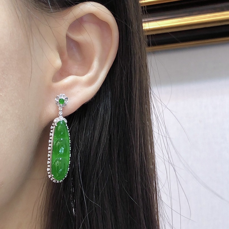 Изумрудные серьги, увлажняющая инкрустация камня из нефрита, золото 750 пробы