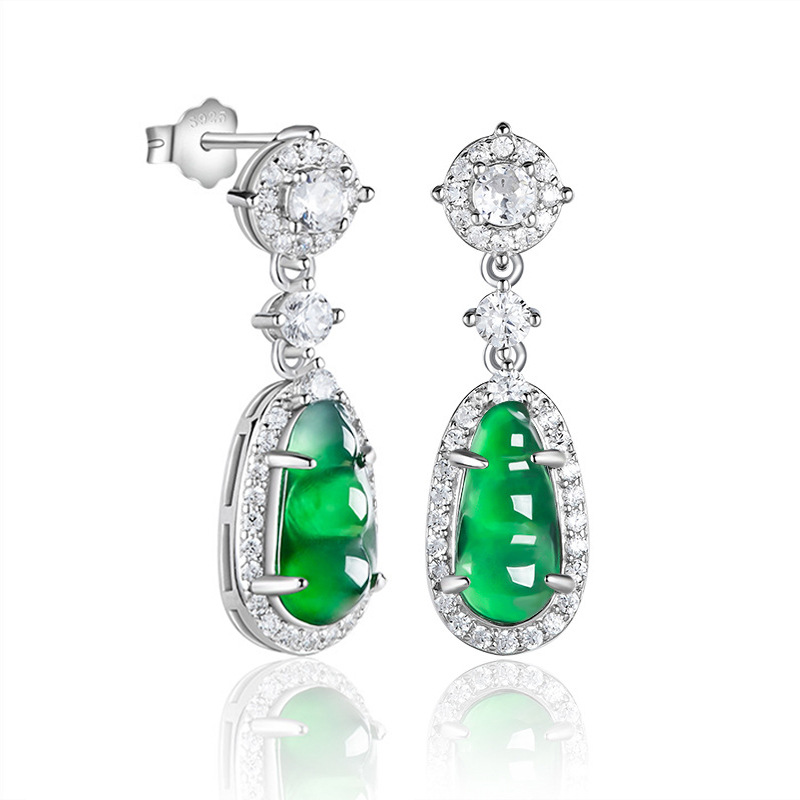 Натуральная изумрудная реплика, модные серьги из нефрита, серебро 925 пробы, имитация льда, простой и элегантный дизайн