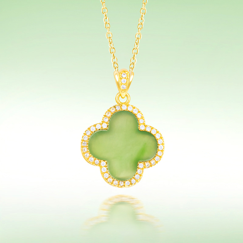 Apple, яшма из старинного материала из нефрита, подвеска, природная руда, ожерелье, четырехлистный клевер, серебро 925 пробы