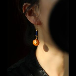 Серьги из воскового агата, янтарное этническое ретро украшение-шарик, этнический стиль, простой и элегантный дизайн