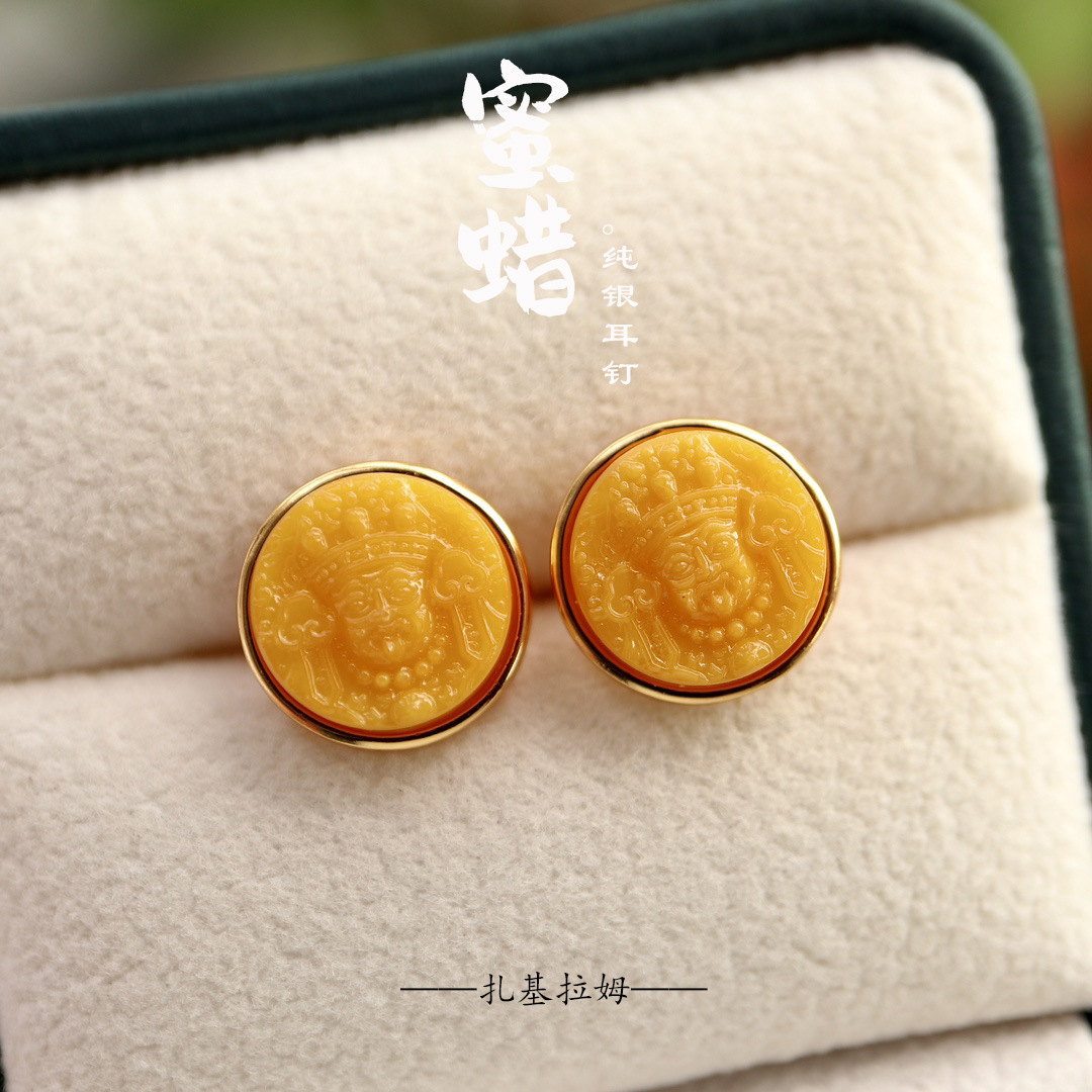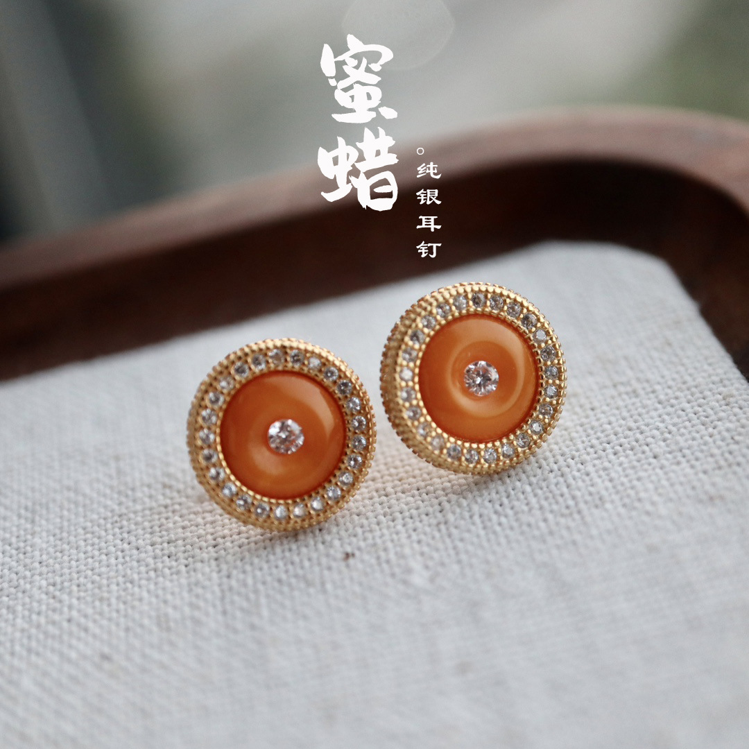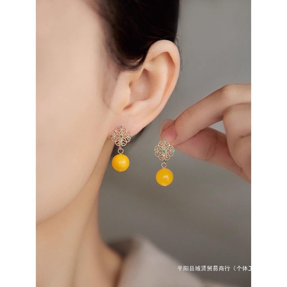 Серьги из воскового агата, инкрустация камня, защитный амулет, пряжка, серебро 925 пробы, оптовые продажи, китайский стиль