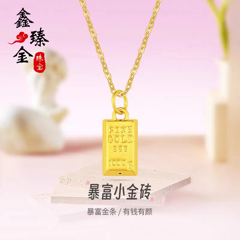 Золотая подвеска, золотой слиток, цепочка до ключиц, браслет с одной бусиной