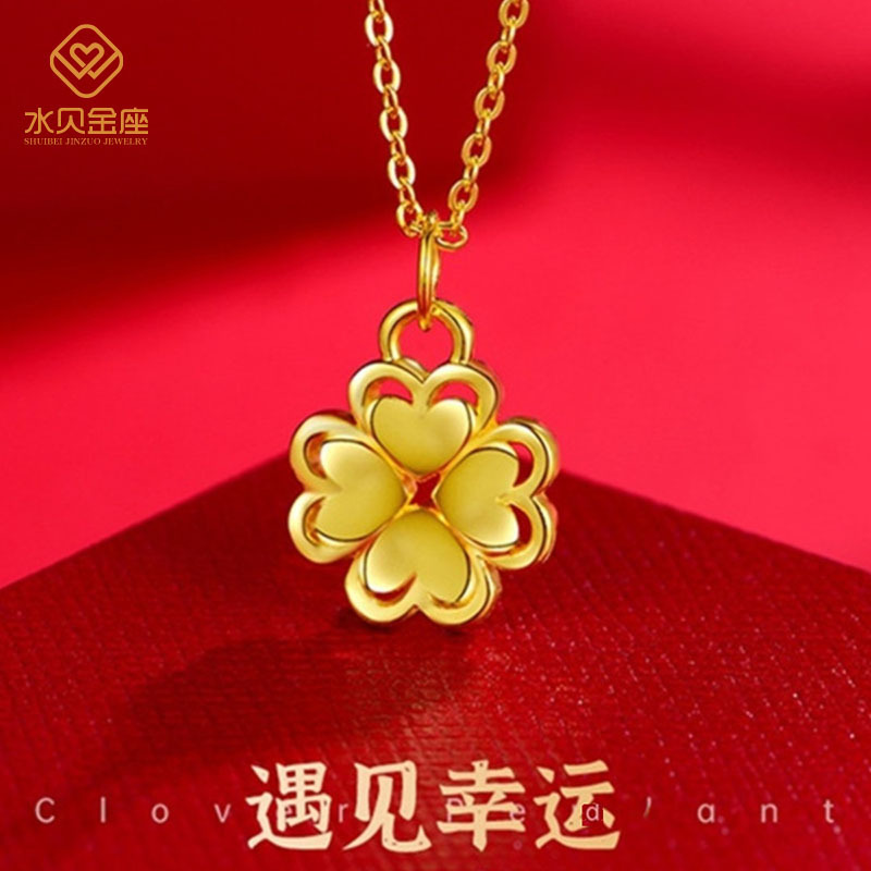 Золотая подвеска в форме сердца, цепочка для матери, четырехлистный клевер, 3D, подарок на день рождения
