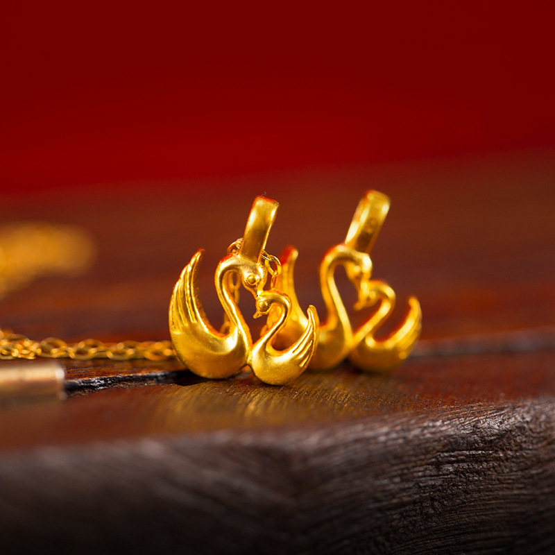 Золотой лебедь, подвеска, цепочка до ключиц, ожерелье, аксессуар, 3D