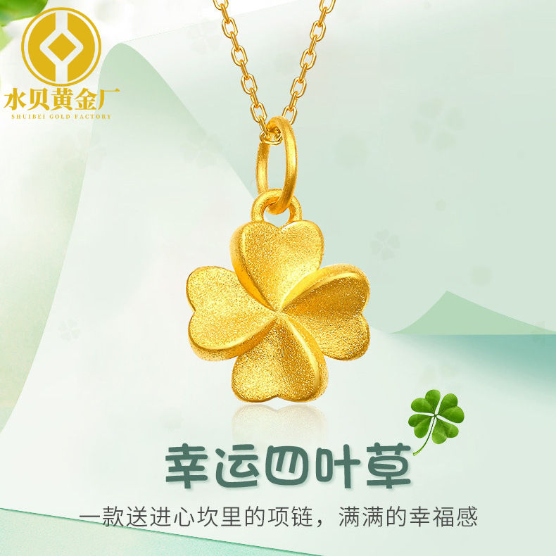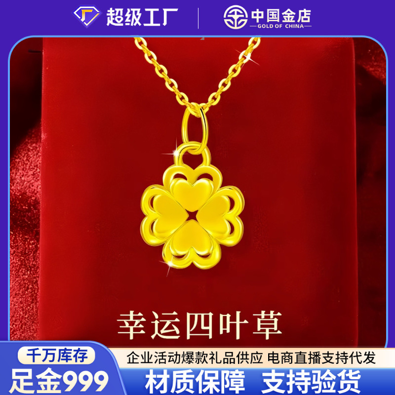 中国金店 Золотое ожерелье, подвеска, модная цепочка до ключиц, четырехлистный клевер, 3D